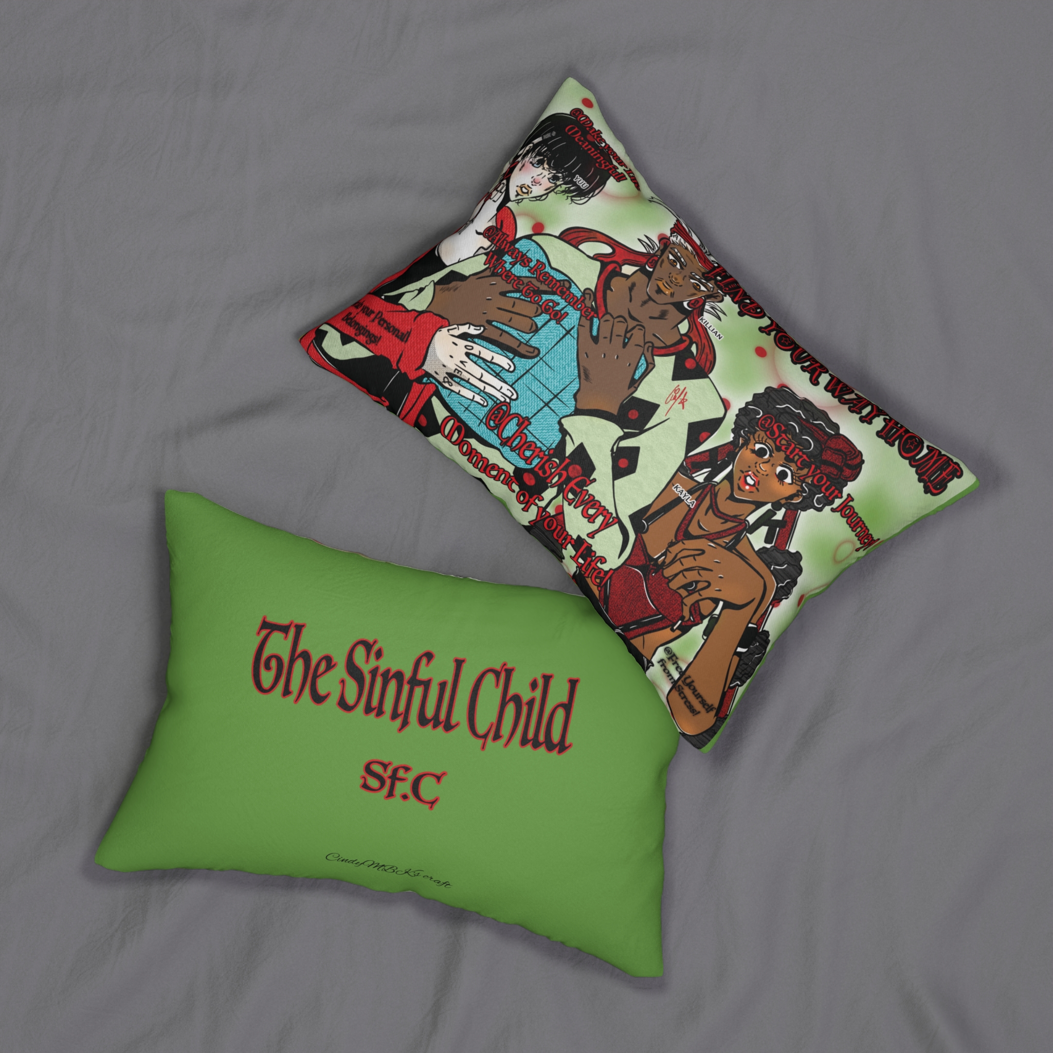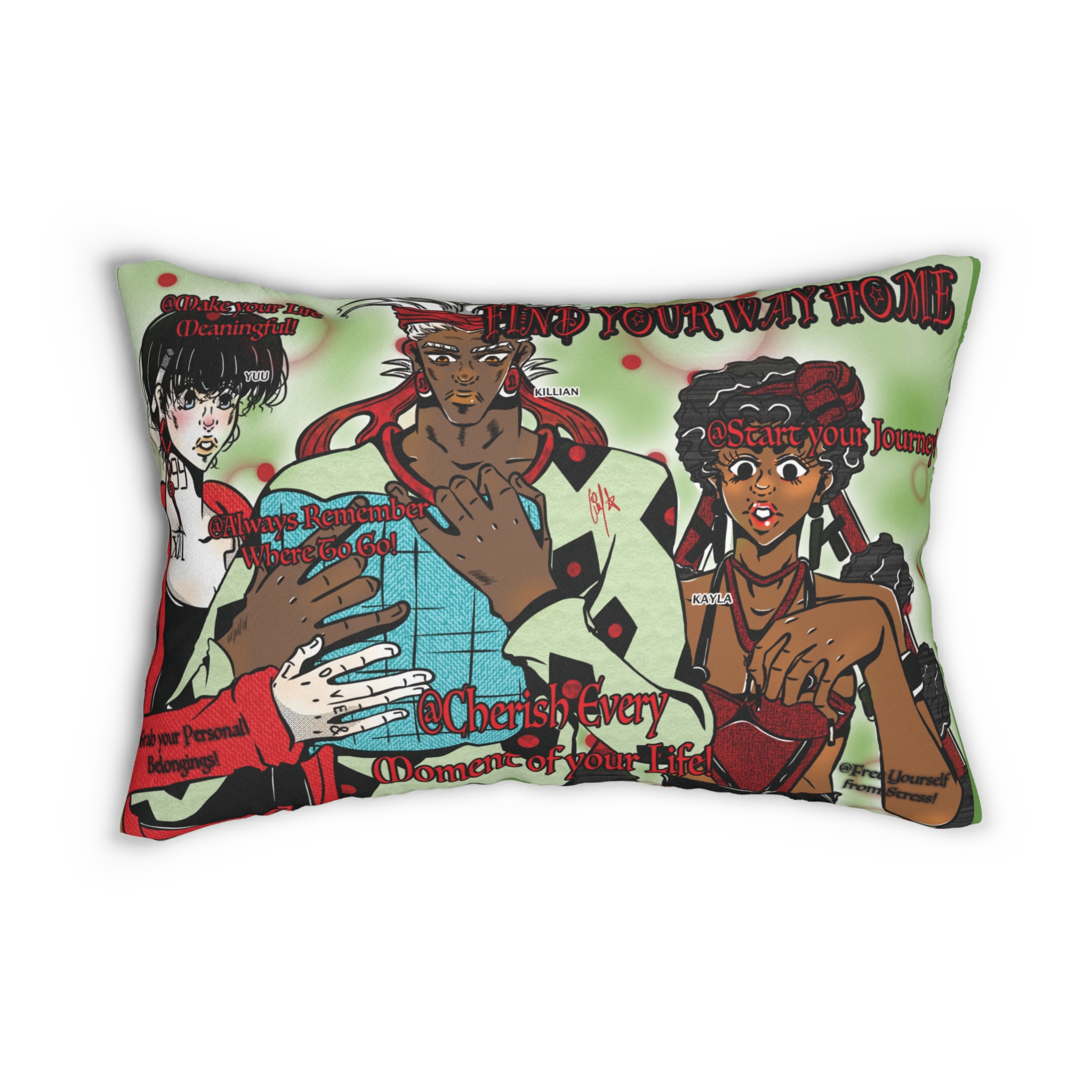 “Find Your Way Home” is a characterful outdoor pillow designed to bring meaning as well as comfort to your garden or terrace. Featuring Yuu, Kayla and Killian from The Sinful Child, this manga-inspired cushion carries a gentle yet powerful reminder: no matter how far you wander, remember your roots and stay true to yourself.