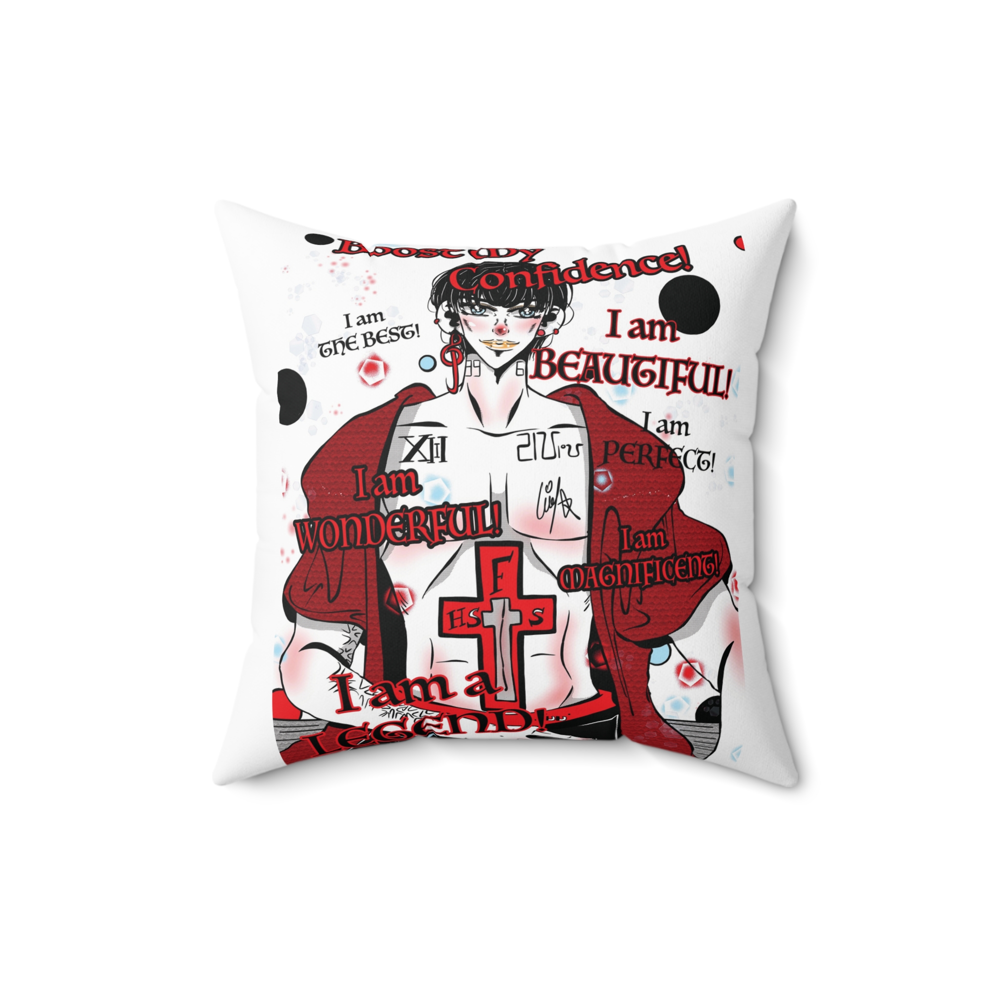 Perfect for indoor home decor, this cushion transforms bedrooms, living rooms and creative spaces into zones of self-belief and positive energy. Featuring confident Yuu Hartglove from The Sinful Child, the pillow showcases an overly confident shounen-inspired character who never doubts his worth — no matter what others say. His reckless, larger-than-life attitude becomes your daily reminder to stand tall, think boldly, and own your space!