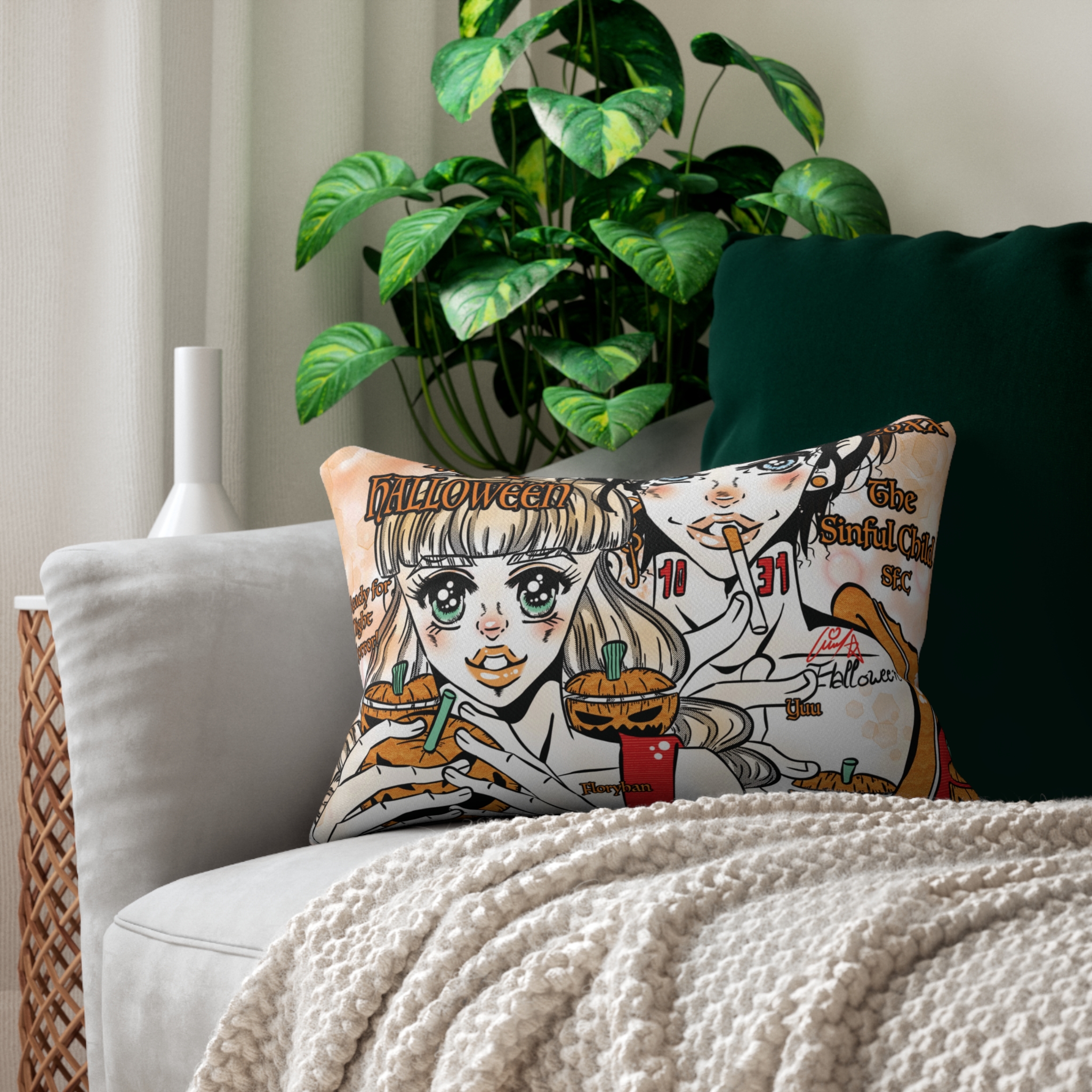 – Bold manga-Halloween artwork — eye-catching on sofas, beds, or seasonal decor