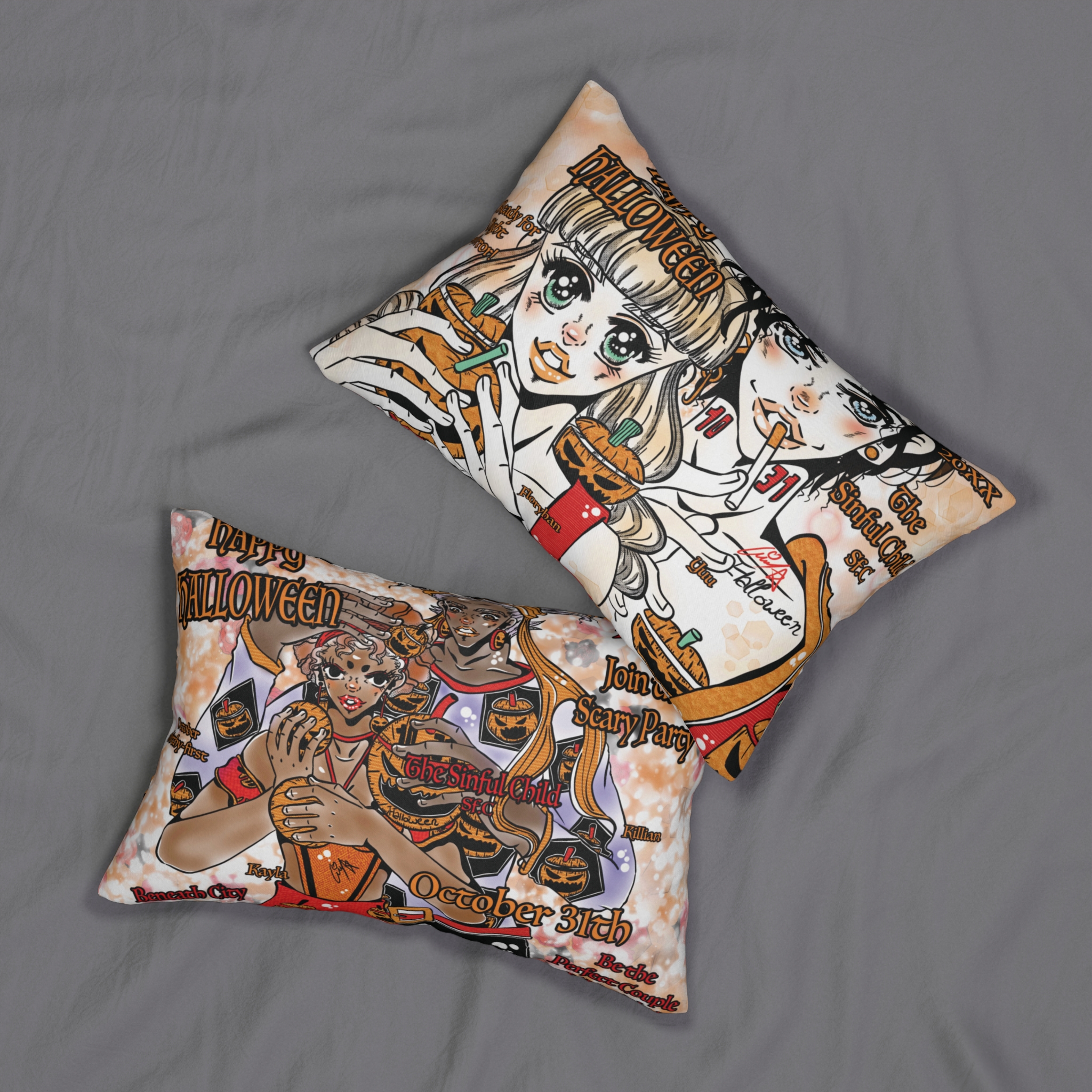 Summon true Halloween spirit into your home with The Sinful Child Spooky Couple Pillow. Featuring the hauntingly charming couples Yuu x Floryhan and Killian x Kayla, this festive cushion spreads seasonal enchantment to every corner of your space. Let the glow of October 31st magic fill your decor and transform your rooms into a celebration of pumpkins, lantern light, and playful fright.
